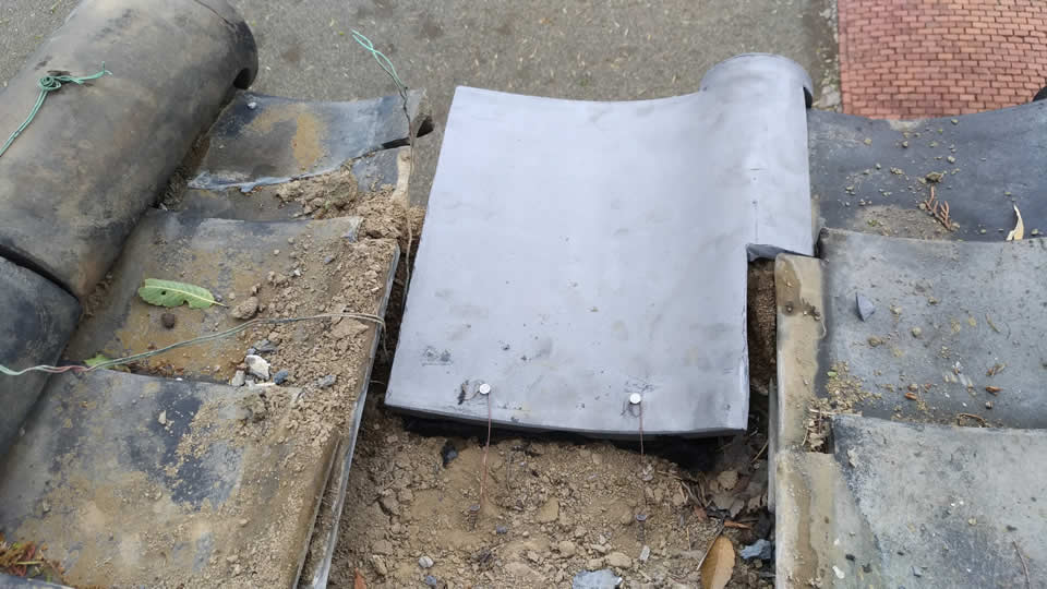 損傷前の状態に復元することができました。屋根の反り具合と、ほぼ同様の反り具合で下り棟をとりました。