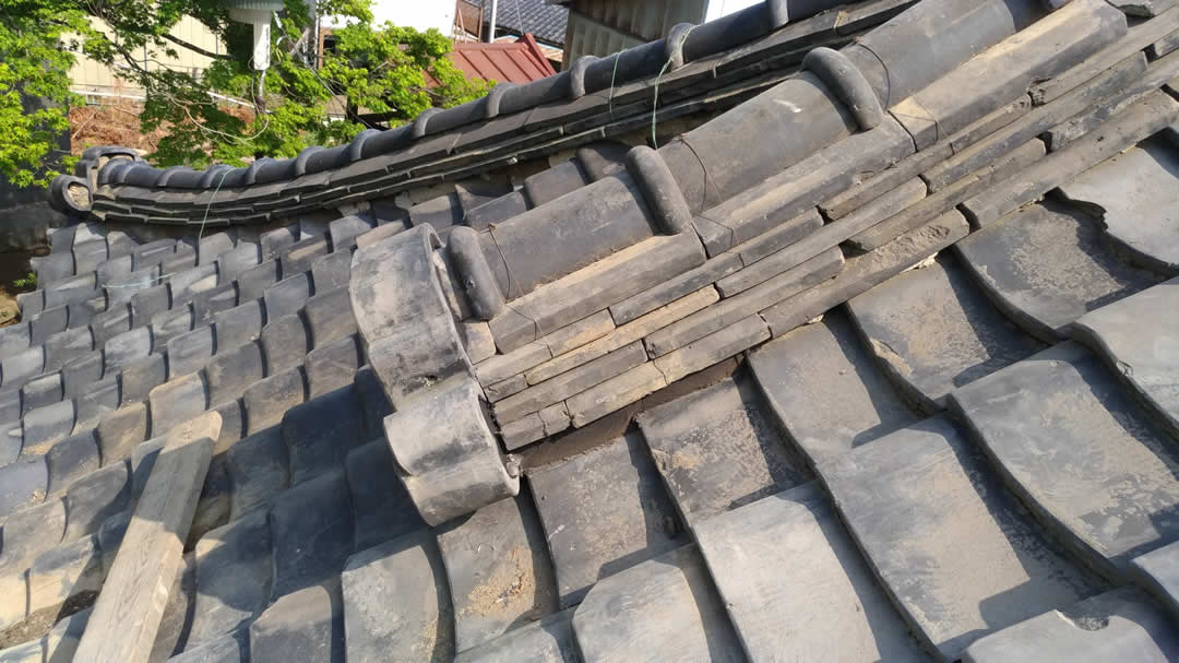 - 軒先周辺の瓦が破損等しており、それらを施工当時の方法で修理しました。