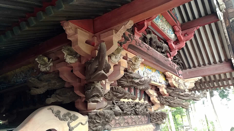 八坂神社の彫刻は国宝・妻沼(熊谷市)聖天山聖天堂の彫刻と非常に良く似ていると言われています。